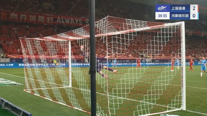 比赛第40分钟,河南前场任意球机会,纳萨里奥任意球直接攻门击中门框。